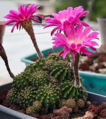 Te recomendamos que plantes tus echinopsis oxygonas en macetas anchas, las raíces que desarrollan no suelen ser muy profundas así que la maceta puede ser de poca altura.